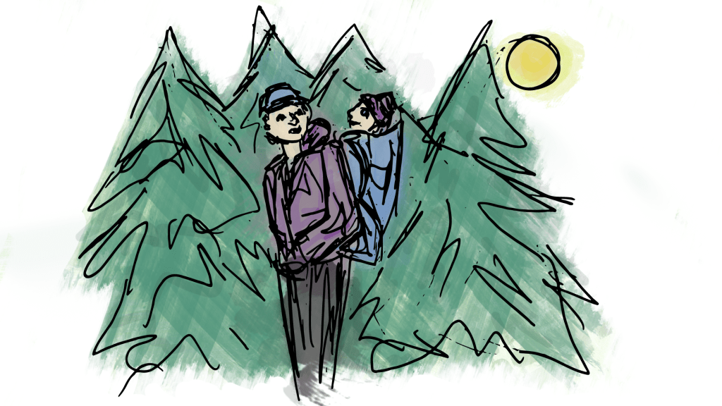 And that’s only inside. Take her outside and her eyes will have, to use the scientific terminology, an absolute field day. (Only after, of course, she theatrically squints and turns her head away from the sun, like a teenage gamer walking outside for the first time in weeks.) Once they are adjusted to the brightness, or shielded by a bucket hat, they get to work. They take in the trees and the mountains and the squirrels and the birds and the rocks and the leaves and the giant empty blue space up above and the green green green all around. Sometimes they dance across her plane of vision, darting from one thing to the next without rest; other times, they stare, endlessly, at some inanimate object, like a chair or a blade of grass. On hikes through the forest, they look straight up, through the canopy of trees, and when you are overcome by curiosity you will do the same and wonder why you don’t do it more often, for the sight is magnificent: streams of blue and light popping through small pockets between the trees. You smile as you realize that your 3-month-old has taught you to look for the beauty in hidden places.